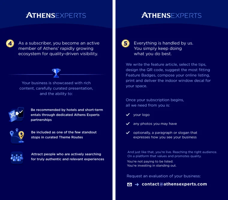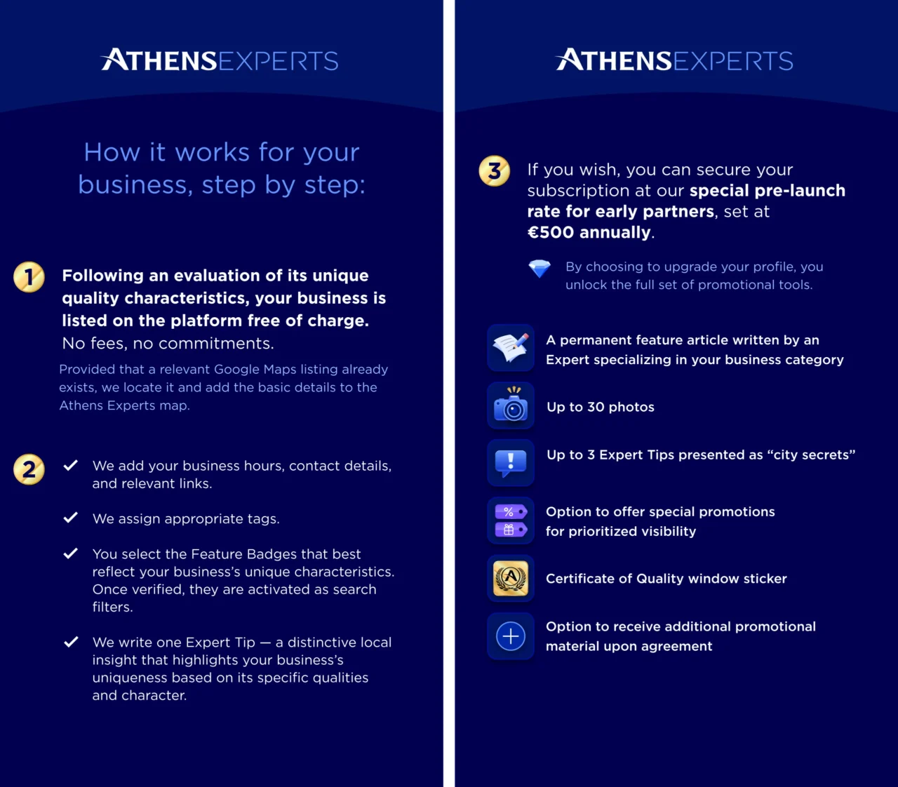 Το αποτέλεσμα είναι μια παρουσίαση που λειτουργεί ως εργαλείο ταύτισης αξιών μεταξύ του Athens Experts και των επιχειρήσεων που ξεχωρίζουν πραγματικά.