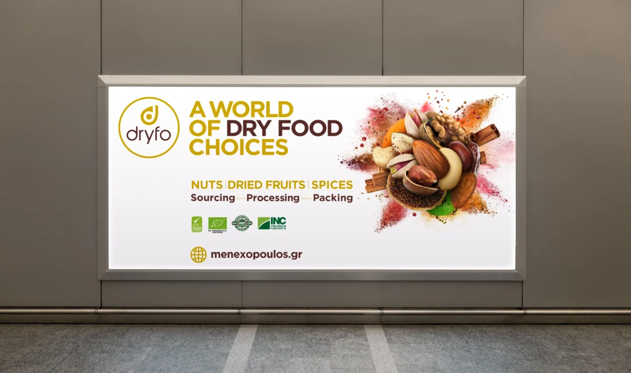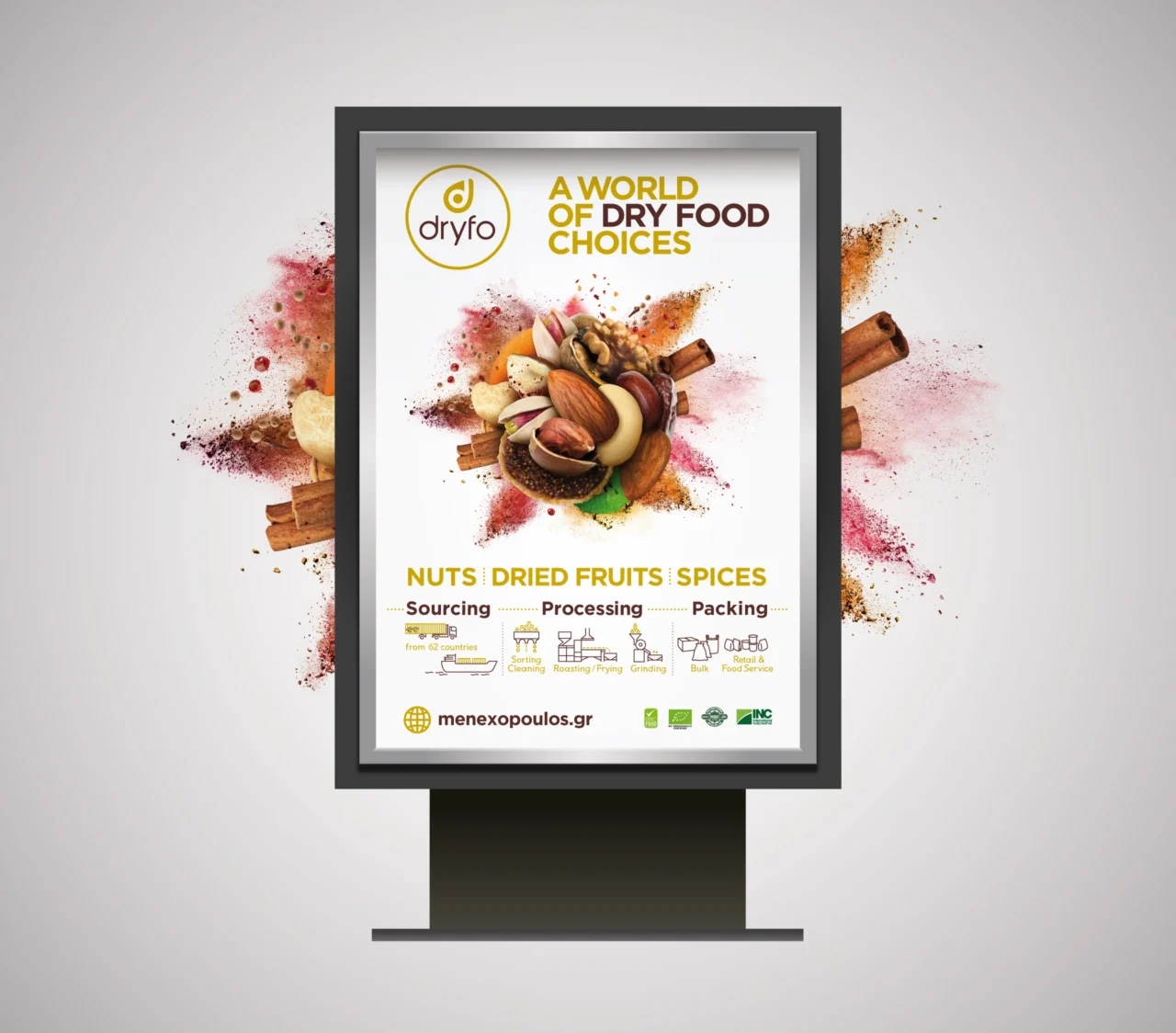 Dryfo Menexopoulos Bros S.A. is a three-generation family business founded in 1950, based in Thessaloniki, Greece that markets a line of products ranging from nuts, dried fruits, spices and flavorings to cereals, pulses, aromatic plants and confectionery products. Handling the widest range of dry food products in the Balkan area is not an easy task and needs a visual communication that can stand out of the competition and reflect the top notch quality of their products.