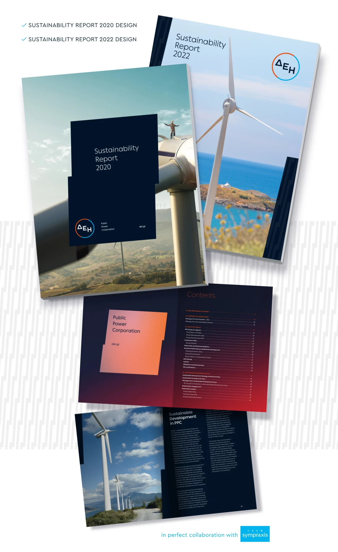 Σε άριστη συνεργασία με την ομάδα Sympraxis, η Plus Gravity σχεδιάζει και σελιδοποιεί την Έκθεση Βιώσιμης Ανάπτυξης της ΔΕΗ για τα έτη 2020 και 2022, στην Ελληνική και Αγγλική γλώσσα.